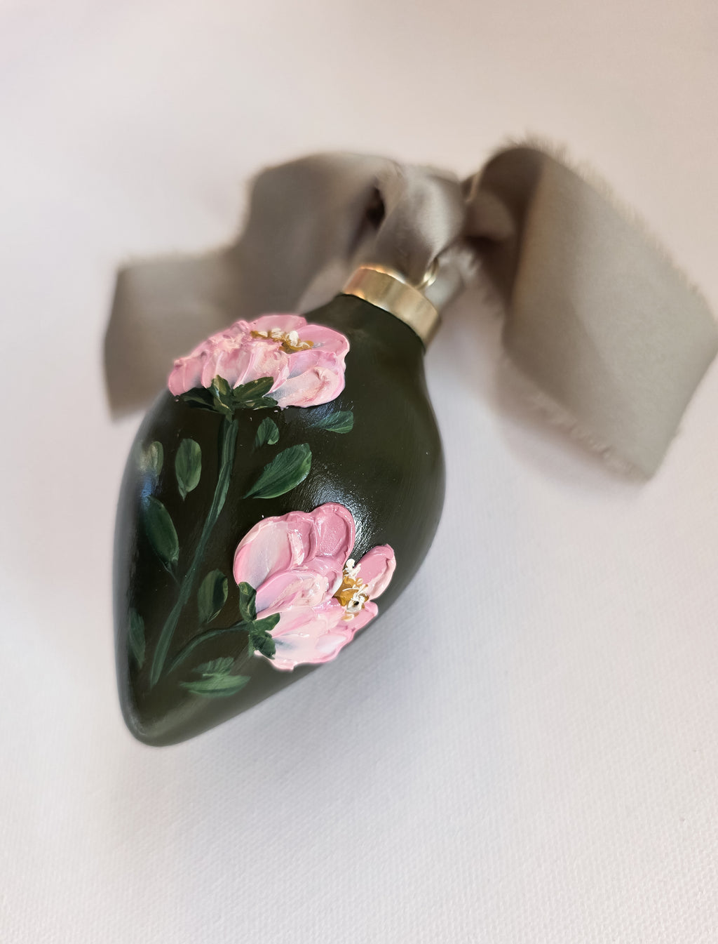 A ceramic ornament that measures 4" from top to bottom.  Each ornament comes in a cotton bag with a Wildflowers & Pistols tag and a wildflower seed paper heart that can be planted to grow your very own wildflowers. Perfect for gifting!